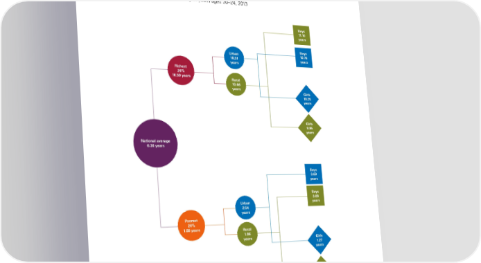 FIGURE 2.4 In Pakistan, the level of education achieved depends on gender, residence and wealth average number of years of schooling of youth aged 20–24, 2013 Boys 11.10 years Boys Urban 10.76 10.5 years 1 years Richest 20% 10.50 years Rural 10.46 years Girls 10.25 years Girls 9.95 years National average 6.30 years Boys 3.69 years Boys 3.08 Urban years 2.54 years Poorest 20% 1.99 years Rural 1.86 years Girls 1.27 years Girls 0.75 years Note: Chart is not drawn to scale. Source: UneSCo, Global education Monitoring report, World inequality database on education (Wide), 2013 dhS data. The STaTe of The World’S Children 2016 47
