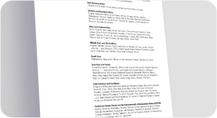 Regional classification Averages presented at the end of each of the 14 statistical tables are calculated using data from countries and areas as classified below. Sub-Saharan Africa Eastern and Southern Africa; West and Central Africa; Djibouti; Sudan Eastern and Southern Africa Angola; Botswana; Burundi; Comoros; Eritrea; Ethiopia; Kenya; Lesotho; Madagascar; Malawi; Mauritius; Mozambique; Namibia; Rwanda; Seychelles; Somalia; South Africa; South Sudan; Swaziland; Uganda; United Republic of Tanzania; Zambia; Zimbabwe West and Central Africa Benin; Burkina Faso; Cabo Verde; Cameroon; Central African Republic; Chad; Congo; Côte d’Ivoire; Democratic Republic of the Congo; Equatorial Guinea; Gabon; Gambia; Ghana; Guinea; Guinea-Bissau; Liberia; Mali; Mauritania; Niger; Nigeria; Sao Tome and Principe; Senegal; Sierra Leone; Togo Middle East and North Africa Algeria; Bahrain; Djibouti; Egypt; Iran (Islamic Republic of); Iraq; Jordan; Kuwait; Lebanon; Libya; Morocco; Oman; Qatar; Saudi Arabia; State of Palestine; Sudan; Syrian Arab Republic; Tunisia; United Arab Emirates; Yemen South Asia Afghanistan; Bangladesh; Bhutan; India; Maldives; Nepal; Pakistan; Sri Lanka East Asia and Pacific Brunei Darussalam; Cambodia; China; Cook Islands; Democratic People’s Republic of Korea; Fiji; Indonesia; Kiribati; Lao People’s Democratic Republic; Malaysia; Marshall Islands; Micronesia (Federated States of); Mongolia; Myanmar; Nauru; Niue; Palau; Papua New Guinea; Philippines; Republic of Korea; Samoa; Singapore; Solomon Islands; Thailand; Timor-Leste; Tonga; Tuvalu; Vanuatu; Viet Nam Latin America and Caribbean Antigua and Barbuda; Argentina; Bahamas; Barbados; Belize; Bolivia (Plurinational State of); Brazil; Chile; Colombia; Costa Rica; Cuba; Dominica; Dominican Republic; Ecuador; El Salvador; Grenada; Guatemala; Guyana; Haiti; Honduras; Jamaica; Mexico; Nicaragua; Panama; Paraguay; Peru; Saint Kitts and Nevis; Saint Lucia; Saint Vincent and the Grenadines; Suriname; Trinidad and Tobago; Uruguay; Venezuela (Bolivarian Republic of) Central and Eastern Europe and the Commonwealth of Independent States (CEE/CIS) Albania; Armenia; Azerbaijan; Belarus; Bosnia and Herzegovina; Bulgaria; Croatia; Georgia; Kazakhstan; Kyrgyzstan; Montenegro; Republic of Moldova; Romania; Russian Federation; Serbia; Tajikistan; the former Yugoslav Republic of Macedonia; Turkey; Turkmenistan; Ukraine; Uzbekistan Least developed countries/areas [Classified as such by the United Nations High Representative for the Least Developed Countries, Landlocked Developing Countries and Small Island Developing States (UN-OHRLLS)]. 112 THE STATE OF THE WORLD’S CHILDREN 2016